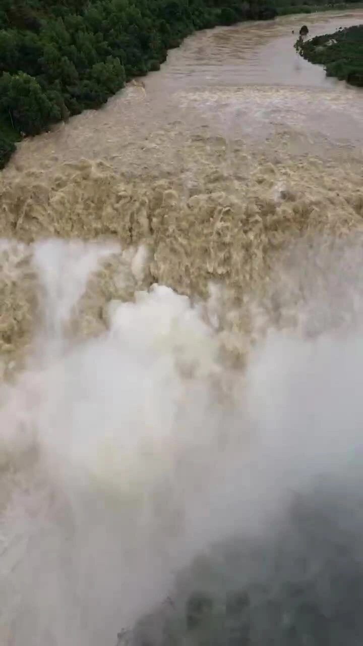 Đoạn video thu hút hàng nghìn lượt tương tác. Nhiều người lo lắng khi dòng nước lũ cuốn theo bùn đất,làm biến dạng cấu trúc 7 tầng thác Pongour.