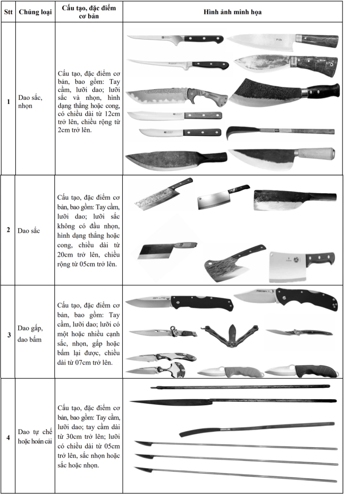 Cơ quan công tố xác định,đây là "dao sắc,nhọn,thuộc Phụ lục 5,danh mục dao có tính sát thương cao ban hành kèm Thông tư số 75/2024 của Bộ trưởng Bộ Công an".