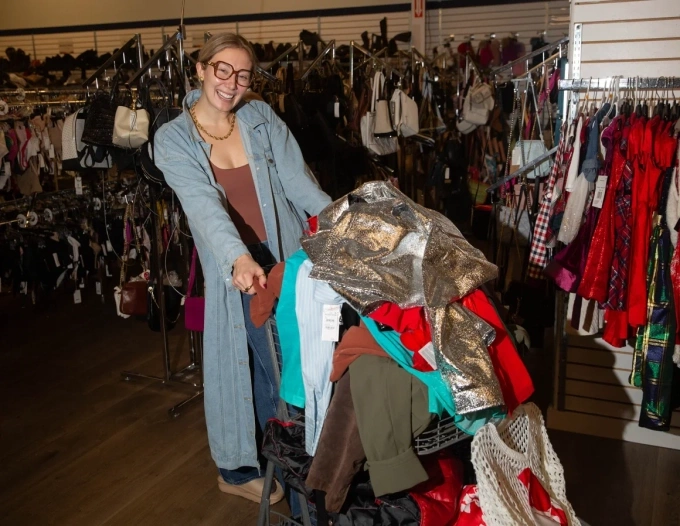 Andolyn Parrish và chồng hàng mua được tại cửa hàng Unclaimed Baggage. Ảnh: Austin Steele/CNN
