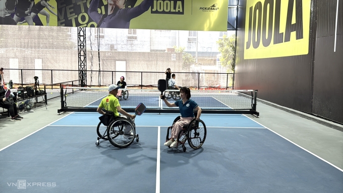Bà Lương Thị Minh Nguyệt,Chủ nhiệm VDADC,cho biết đơn vị phổ biến pickleball từ tháng 4. Hiện CLB có 40 người chơi trên tổng số 150 thành viên,độ tuổi trung bình 20-40. Tỷ lệ người chơi ngồi xe lăn và người khiếm khuyết chi (tay,chân) là 50/50.