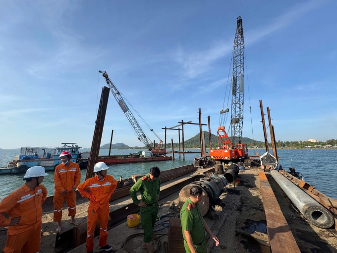 Hệ thống cáp ngầm đưa điện ra Phú Quốc tháng 11/2013. Ảnh: Đình Hoàng