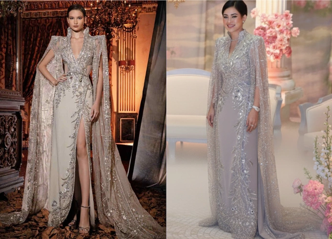 Thiết kế ban đầu (trái) được Thủy Tiên đặt làm lại,phù hợp với vóc dáng của chị.