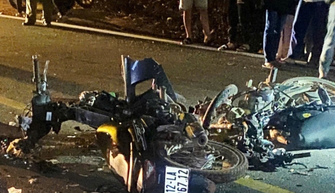 Cú đối đầu tạo tiếng động lớn,bốn người trên hai xe máy văng xuống đường,tử vong tại chỗ. Hai phương tiện vỡ nát,mảnh vỡ văng xa trong phạm vi 100 m2.