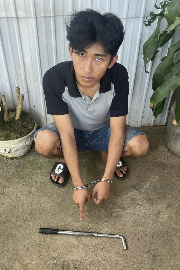 Lê Hoàng Thư khi bị khống chế. Ảnh: Lê Tiến