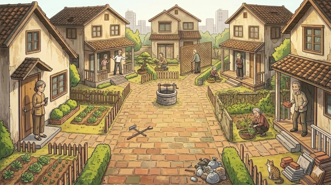 Vậy là từ ý tưởng để cho gia đình đoàn kết,con cháu tối lửa tắt đèn có nhau thành ra ngày càng xa nhau hơn. Có người góp ý nên đập hết nhà,quy hoạch lại,chia ra mỗi người một lô đất làm nhà quay ra đường,có cổng ngõ lối đi riêng để gia đình êm ấm hơn. Nhưng đâu phải dễ vì hiện tại ở đó chỉ những người là bố mẹ,cậu,dì,tuổi đời cũng đã U70,U80 không có điều kiện kinh tế. Hơn nữa trước đó nhà nước đã cấp giấy quyền sử dụng đất (sổ đỏ) cho mỗi nhà theo hiện trạng,bây giờ muốn quy hoạch,tách thửa lại cũng phải liên quan nhiều thủ tục pháp lý. Con cháu đều đã có nơi ở riêng nên không thể đầu tư hay can thiệp vào việc của các cụ được.