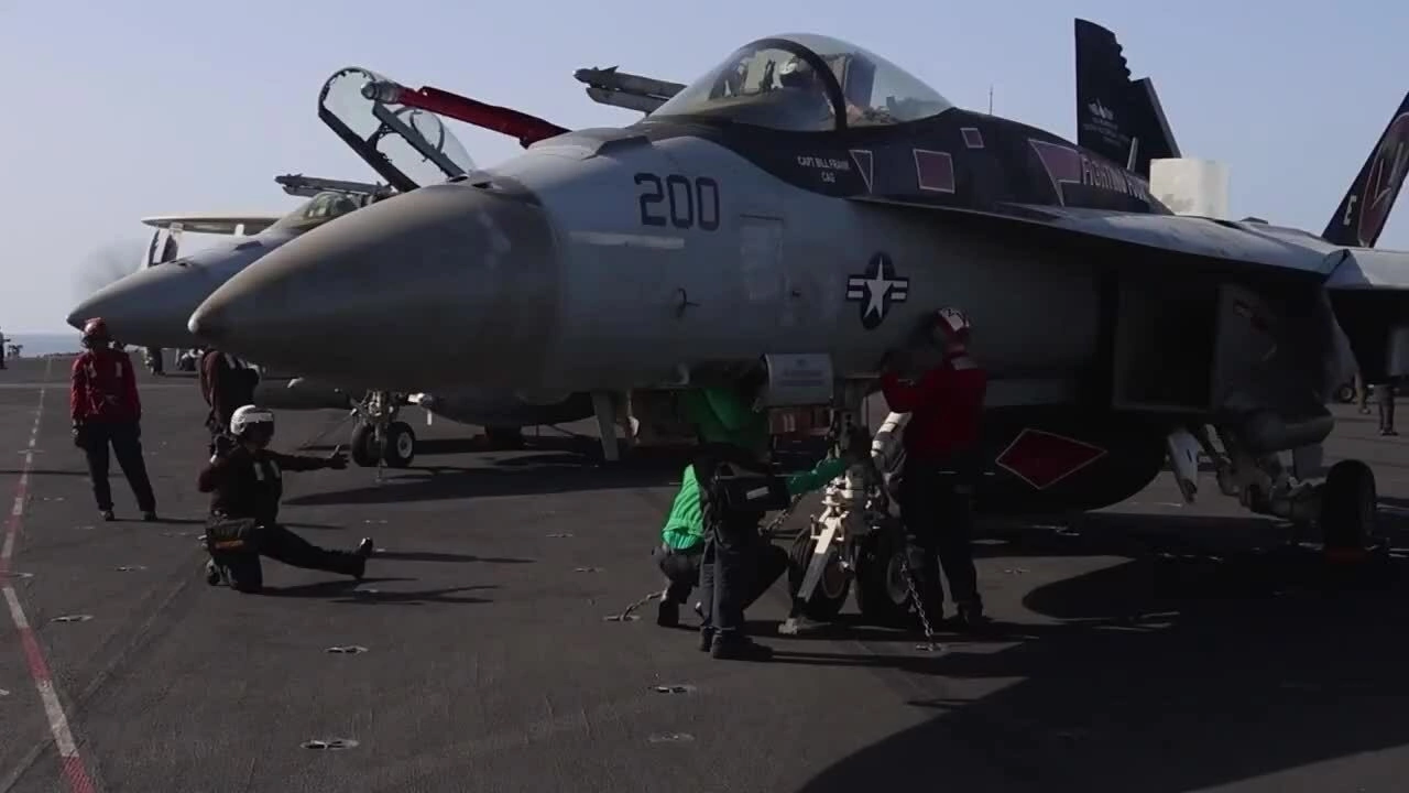 Tiêm kích F/A-18 cất cánh từ tàu sân bay USS Abraham Lincoln ngày 7/4. Video: CENTCOM