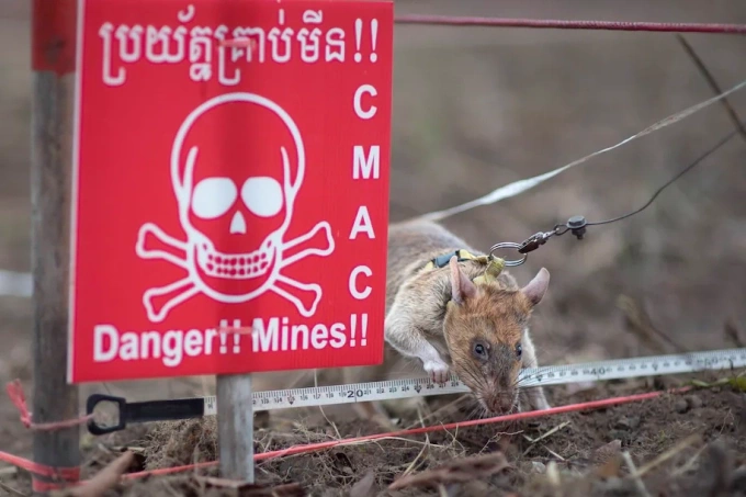 Dò tìm hơn 100 quả mìn, chuột 'anh hùng' được dựng tượng ở Campuchia