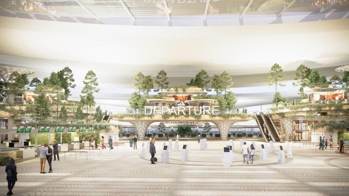 Thiết kế bên trong nhà ga hành khách mới của Cảng hàng không quốc tế Phú Quốc. Ảnh: Sun Group