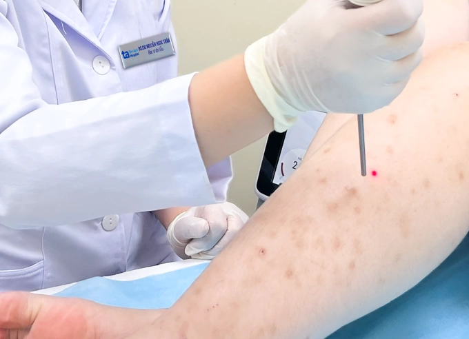TP HCM- Chị Mai, 25 tuổi, nổi mụn đỏ, kèm mủ và đau rát khắp lưng, tay và chân sau khi tẩy lông tại spa, bác sĩ chẩn đoán viêm nang lông nhiễm trùng.